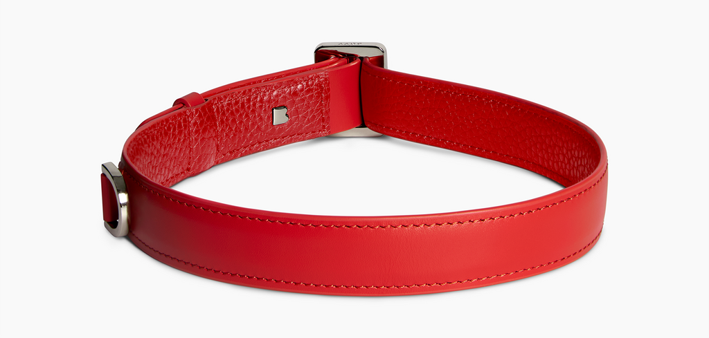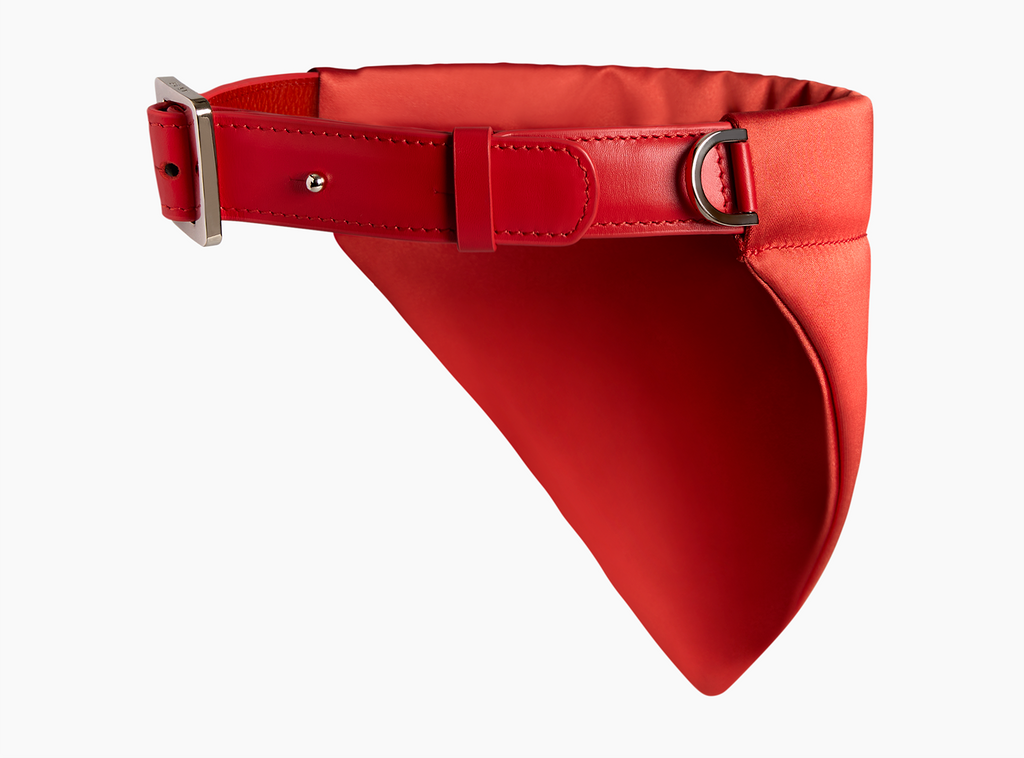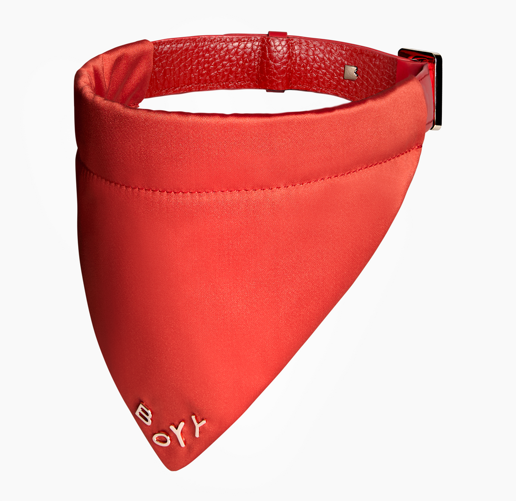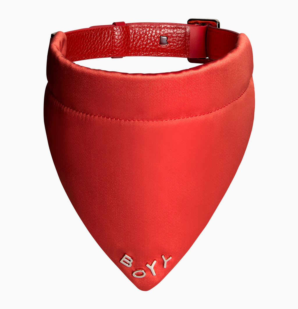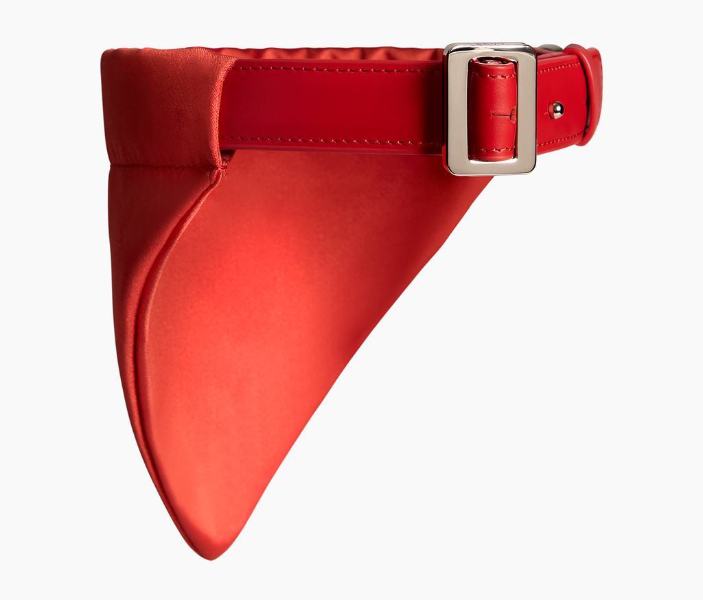 Adjustable calfskin leather dog collar with a ECONYL® regenerated nylon scarf