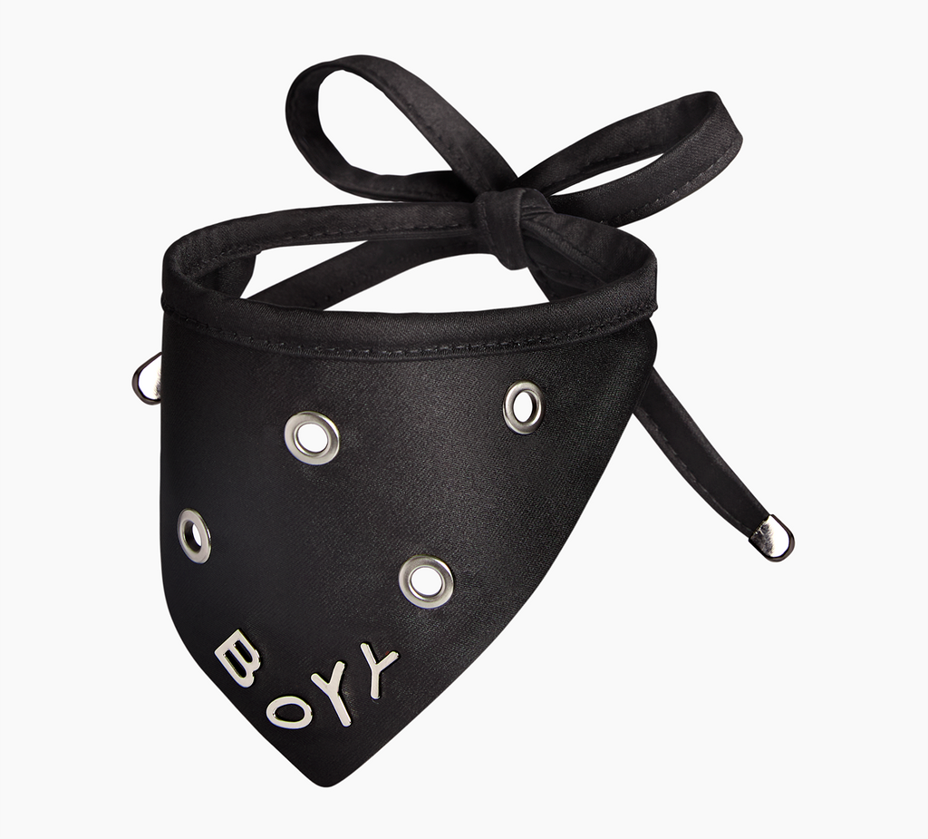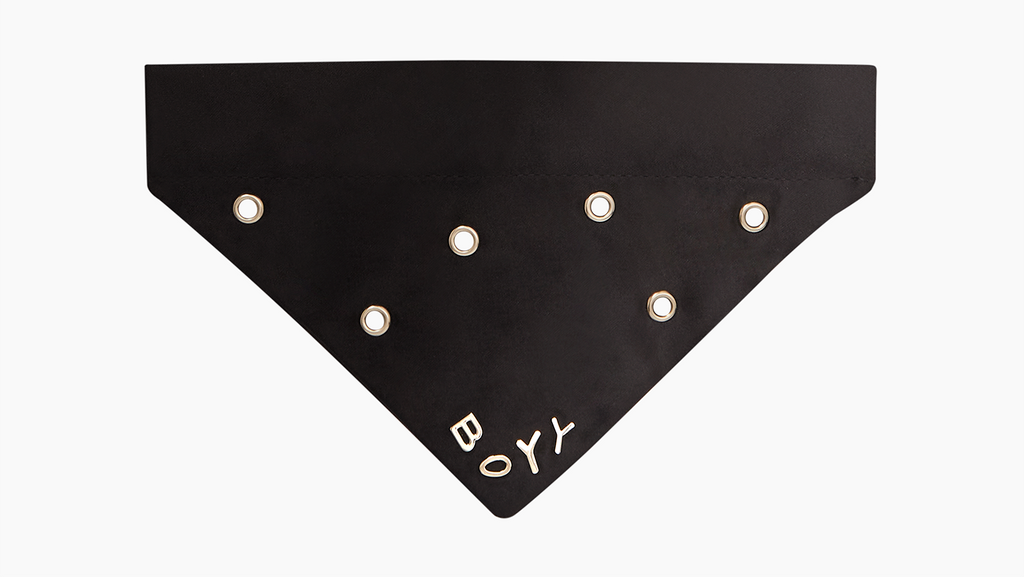 Tie on pet bandana with a ECONYL® regenerated nylon scarf.