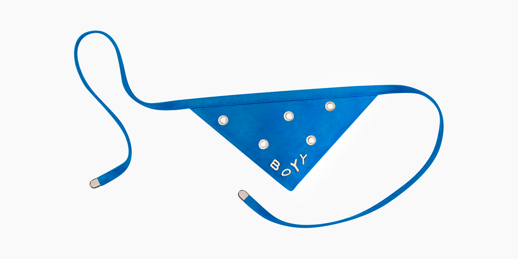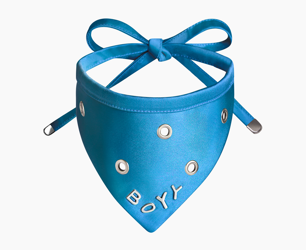 Tie on pet bandana with a ECONYL® regenerated nylon scarf.