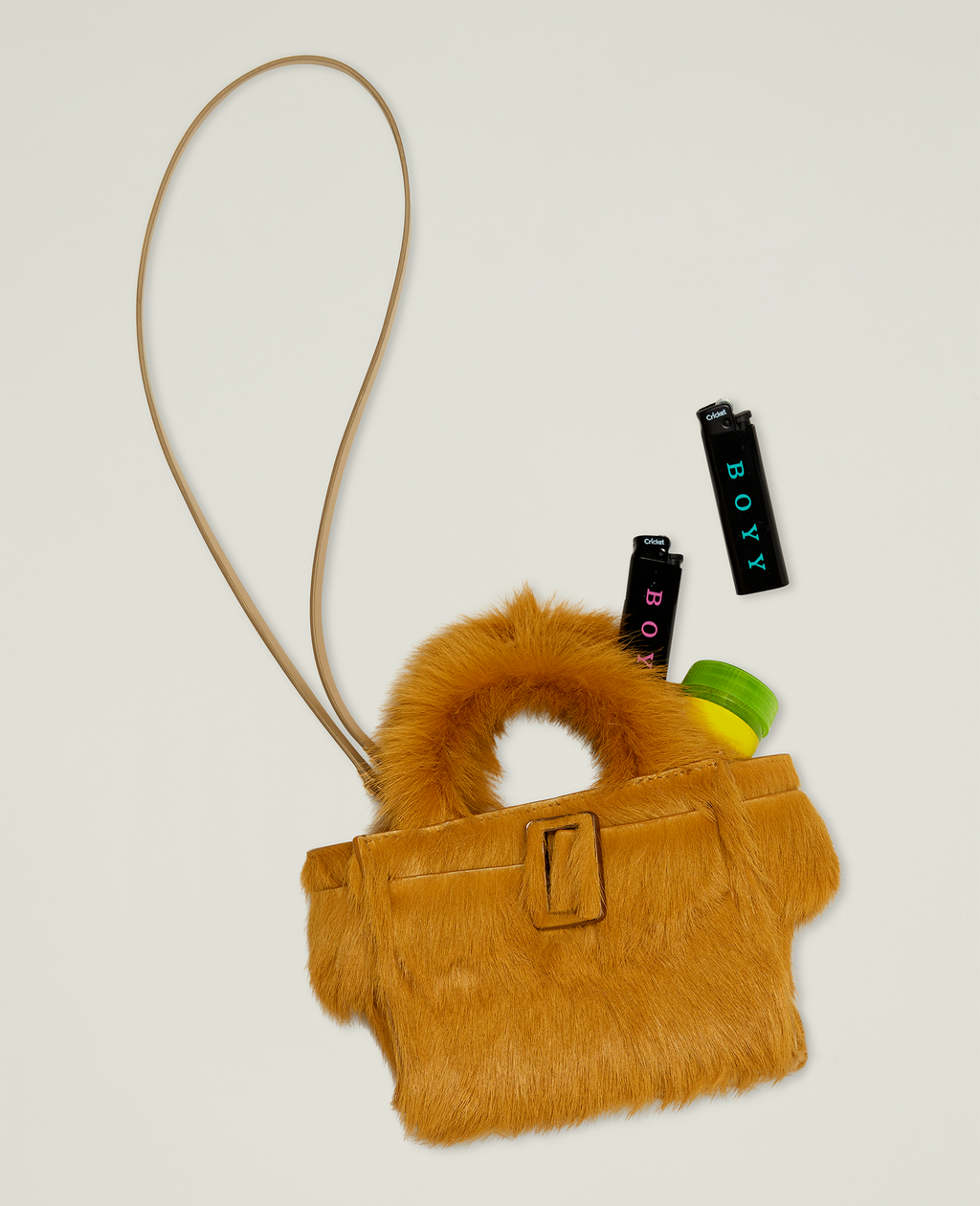 BOYY’s 2020 Resort Collection introduces a dreamy, sea-inspired palette designed to brighten the winter wardrobe. Colourful long calf hair pieces in bright citrus tones stand out against the winter landscape, bringing warmth and optimism to the colder months — a lighthearted reminder that spring is just around the corner.