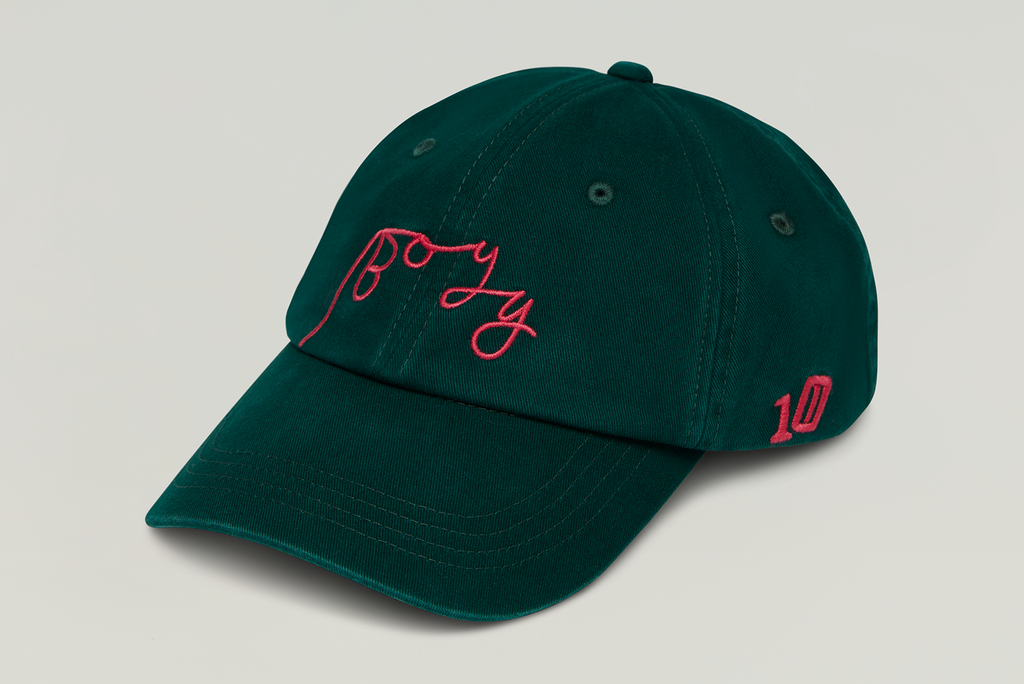 Washed cotton cap. Embroidered BOYY Script Logo and 10 icon.