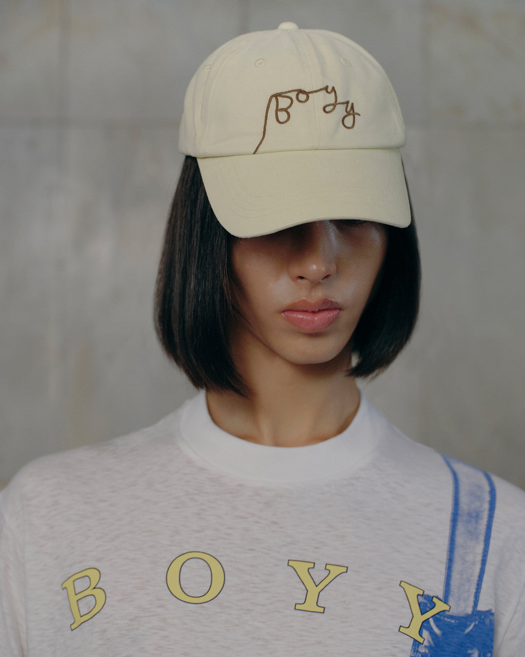 Washed cotton cap. Embroidered BOYY Script Logo and 10 icon.
