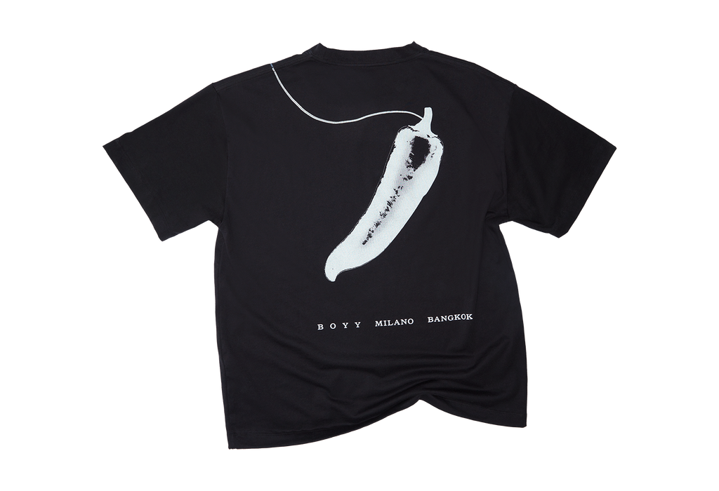 Cotton jersey printed t-shirt with BOYY Chili logo. Designed exclusively for Chili Market project.