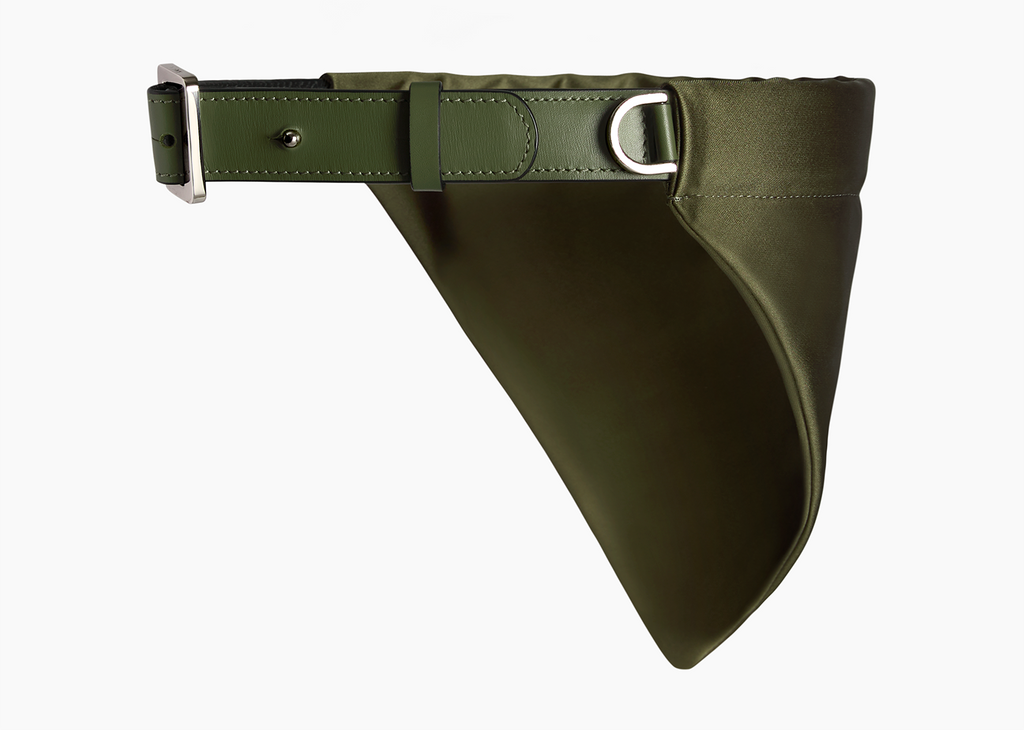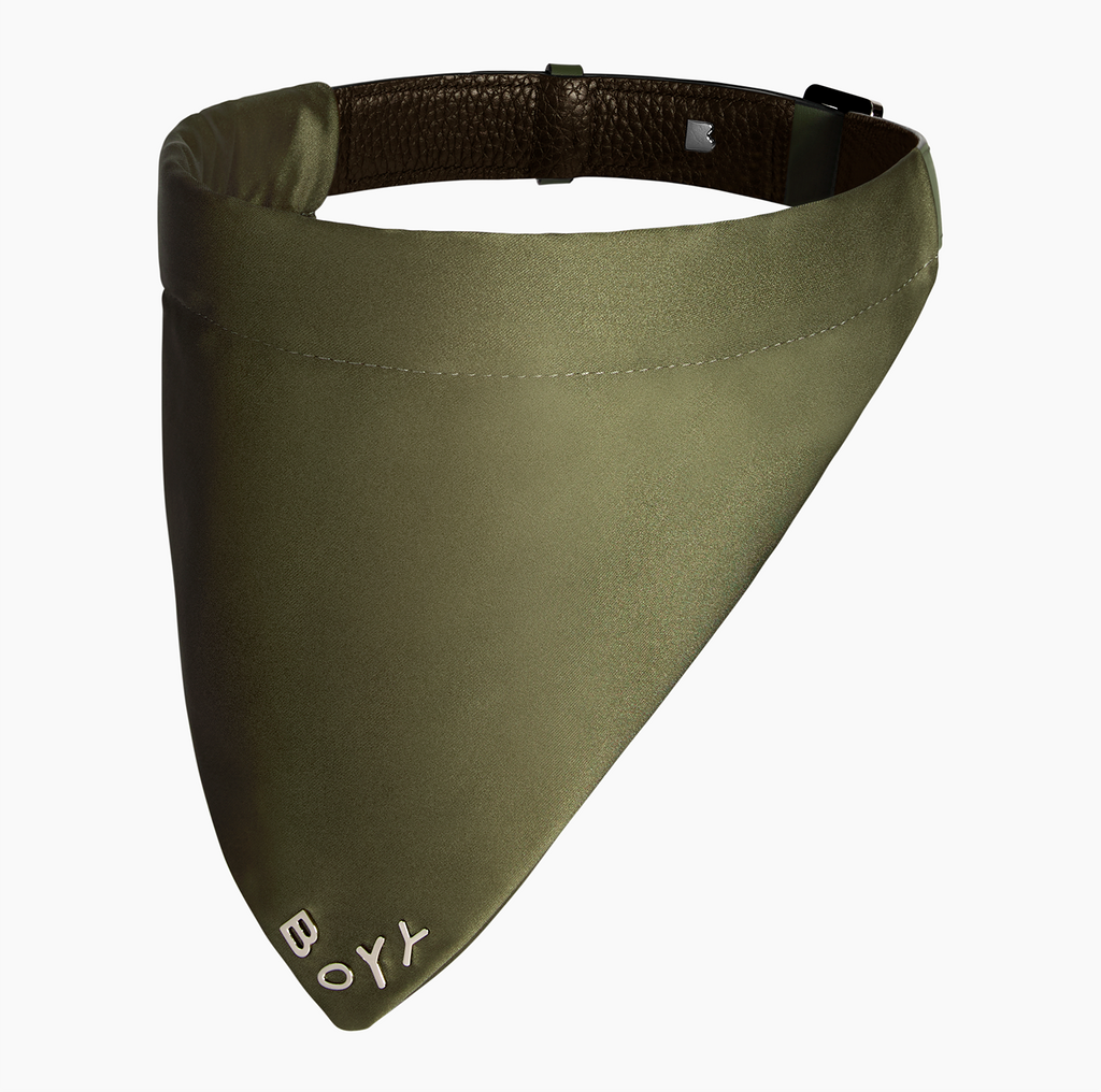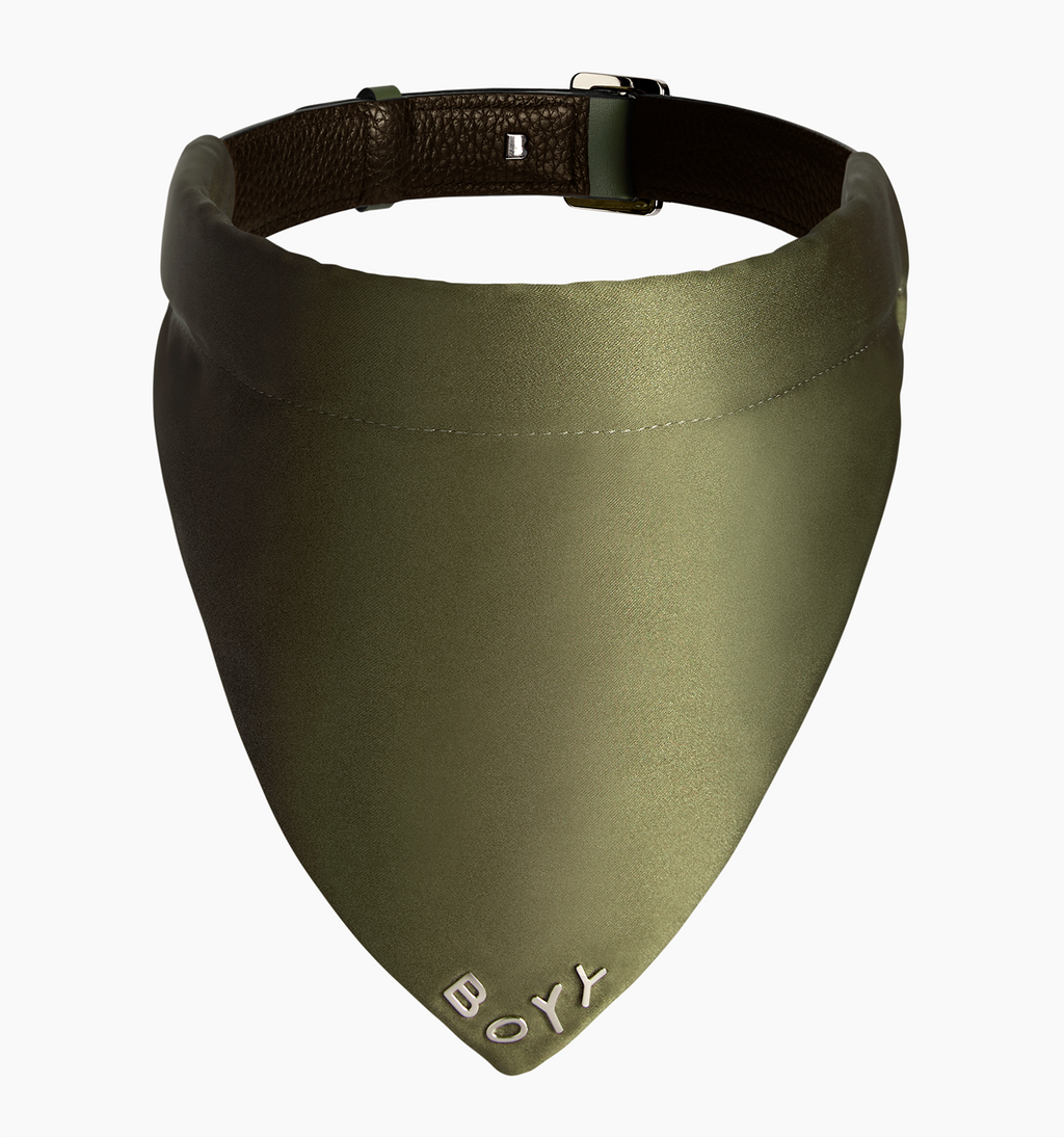 Adjustable leather dog collar with a ECONYL® regenerated nylon scarf.