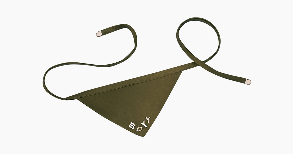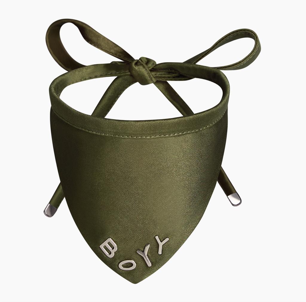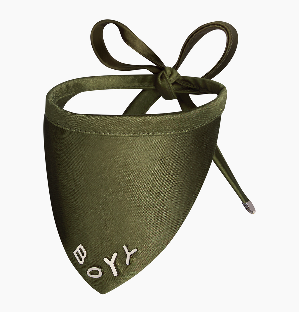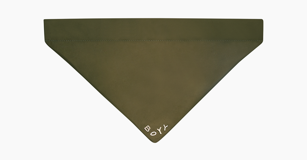 Tie on pet bandana with a ECONYL® regenerated nylon scarf.